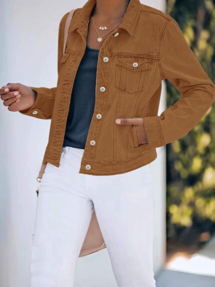 $164.00Women’s Basic Button Down Stretch Fitted Long Sves Denim Jean Jacket