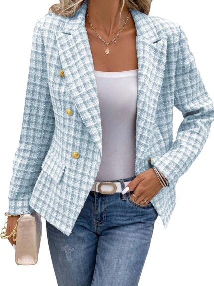 $145.00Women’s Spring Tweed Blazer Plaid Fashion Slim Fully-Lined Double-Breasted Casual Work Jacket with Pockets