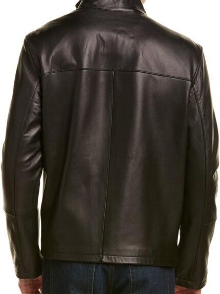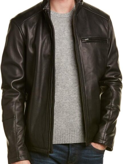 Leather Jacket Men Lightweight Motorcycle Jackets Men’s Stand Collar Bomber Coat with Pockets and Zip