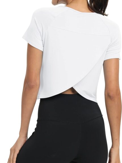 Workout Tops for Women Cropped Split Back Athletic Gym Exercise Shirts Loose Fit