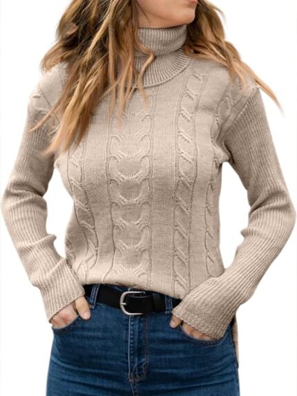 Womens’ Turtleneck Long Sleeve Cable Knit Sweaters